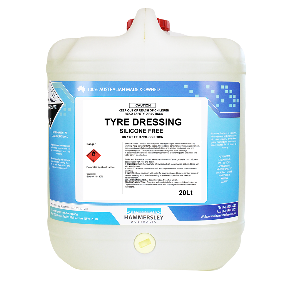Silicone free, tyre conditioning concentrate. Water based, low hazard rating, environmentally conscious. Preferred by professional detailers, body shops and spray painters.